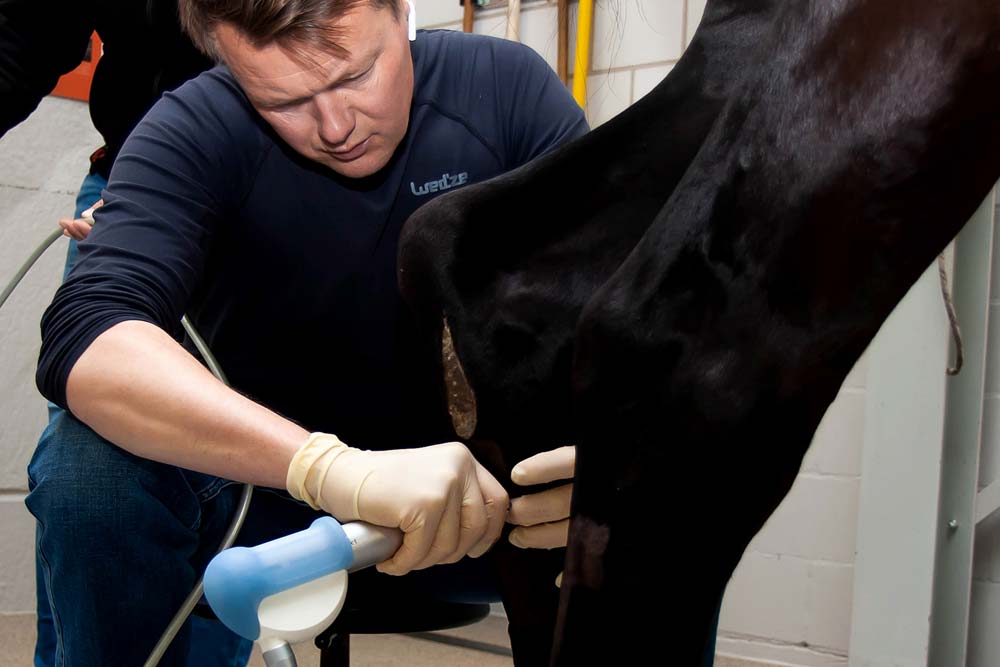 Binnen de paardengeneeskunde gebruiken we schokgolftherapie ter behandeling van orthopedische problemen zoals peesblessures en aanhechtingspathologieën van pezen (tenniselleboog, hielspoor). ESWT wordt nogal eens op meer plaatsen op het paardenlichaam ingezet, maar van andere dan bovengenoemde toepassingen is het effect niet altijd bewezen en zijn de resultaten niet éénduidig.
