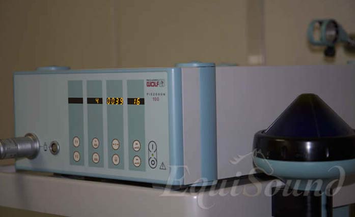 • Piëzo-elektrisch (PE): Piëzokristallen die in de met water gevulde behandelkop zijn aangebracht, worden onder invloed van een elektrische spanning vervormd, waardoor een golf ontstaat in het water. De vorm van de bol zorgt ervoor dat de golven worden gefocust en schokgolven ontstaan. Bij EquiSound gebruiken we dit type van ESWT.